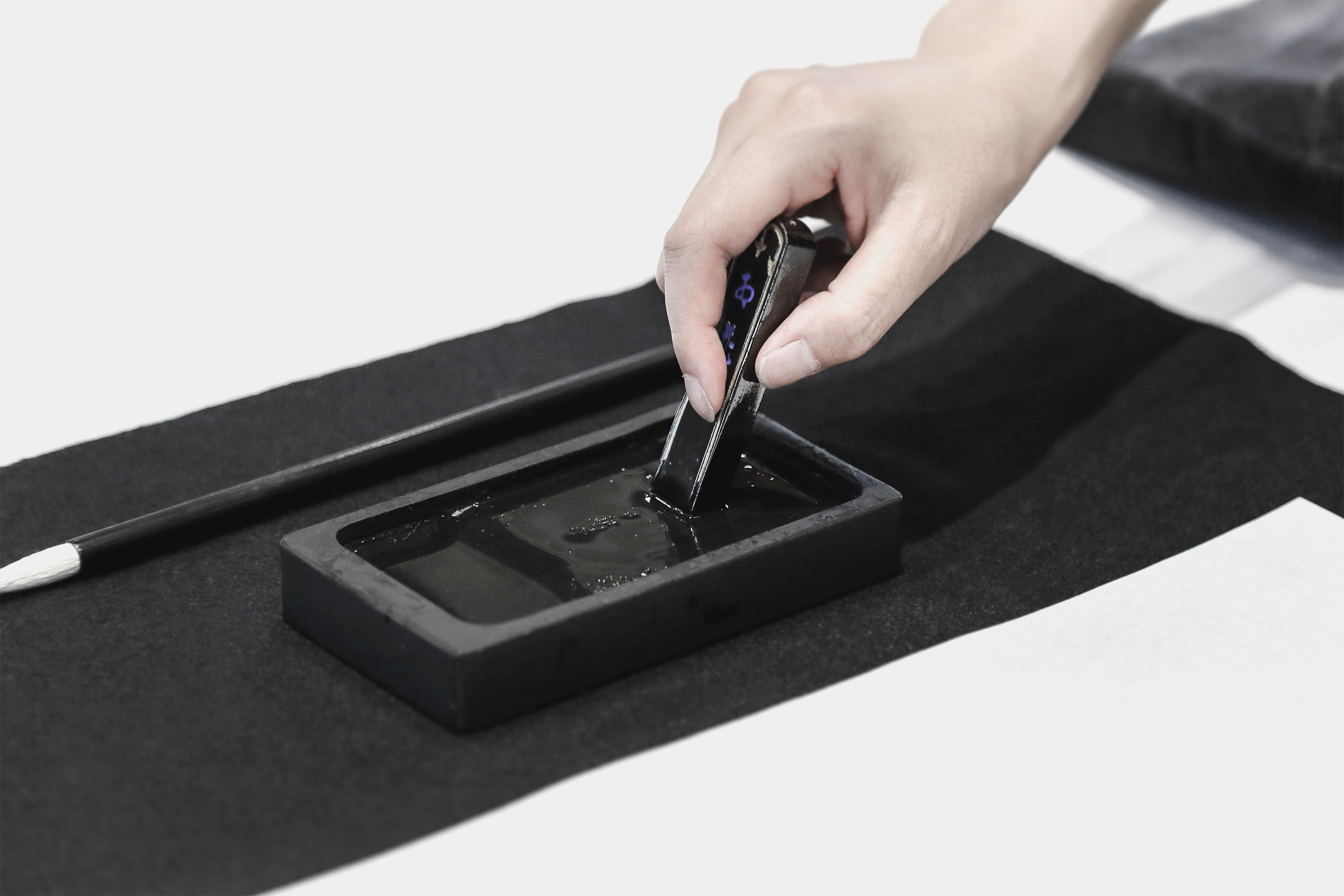 書道家には新進気鋭の若手アーティストとして国内外で活躍する、書道家 万美を迎えた。力強くも繊細な書が様々なアイテムにおいて展開され、新たなコラボレーションが花を添えた。